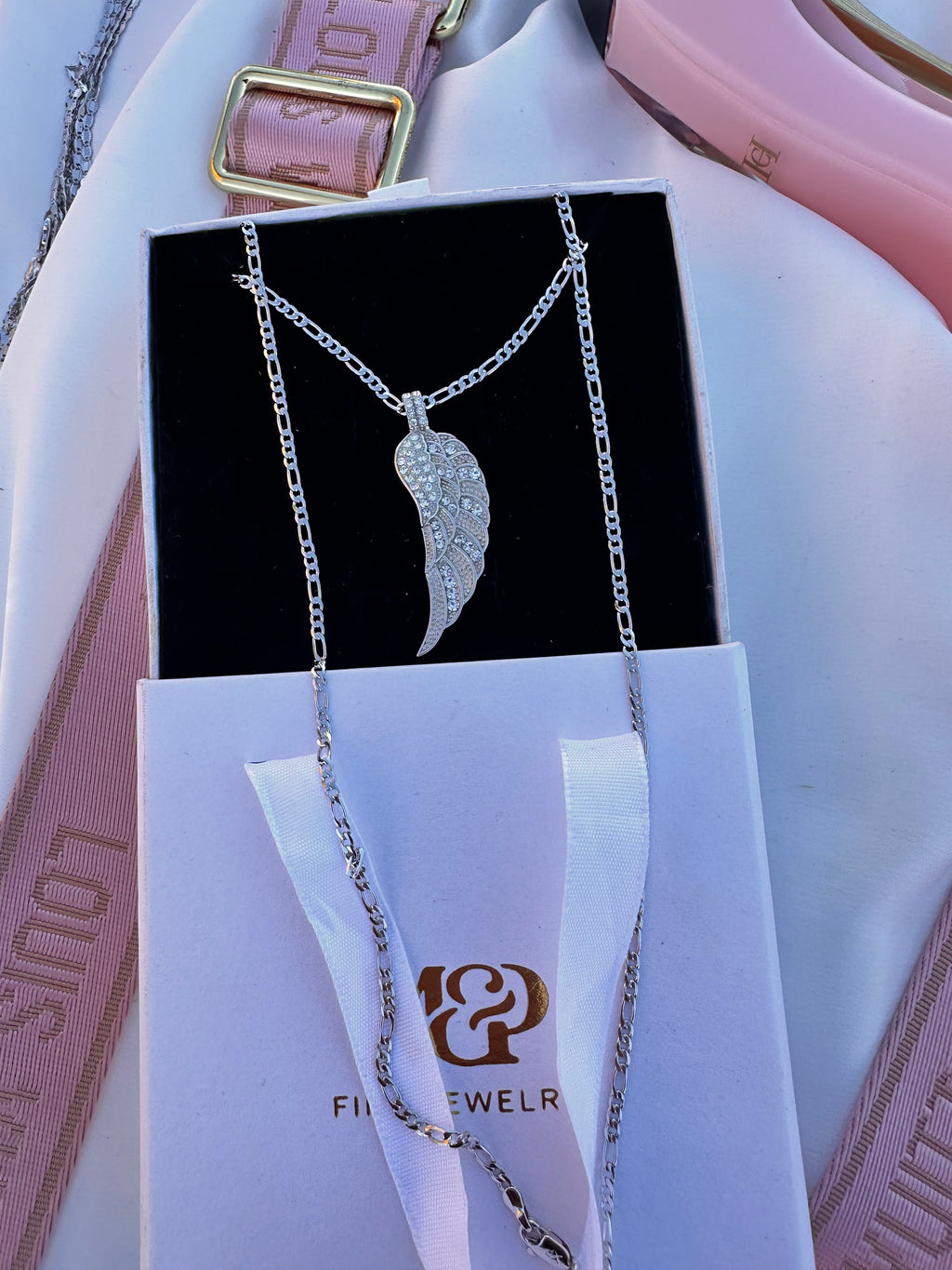 Spread your wings with this celestial beauty! Delicate sterling silver angel wings dangle gracefully from a lustrous 21-inch 14k gold-filled figaro chain—the perfect blend of heavenly symbolism and everyday elegance. Whether you're channeling your inner guardian or simply love a touch of whimsy, this necklace whispers inspiration with every wear. Lightweight, durable, and endlessly versatile, it's your new go-to piece for adding a little magic to any moment.