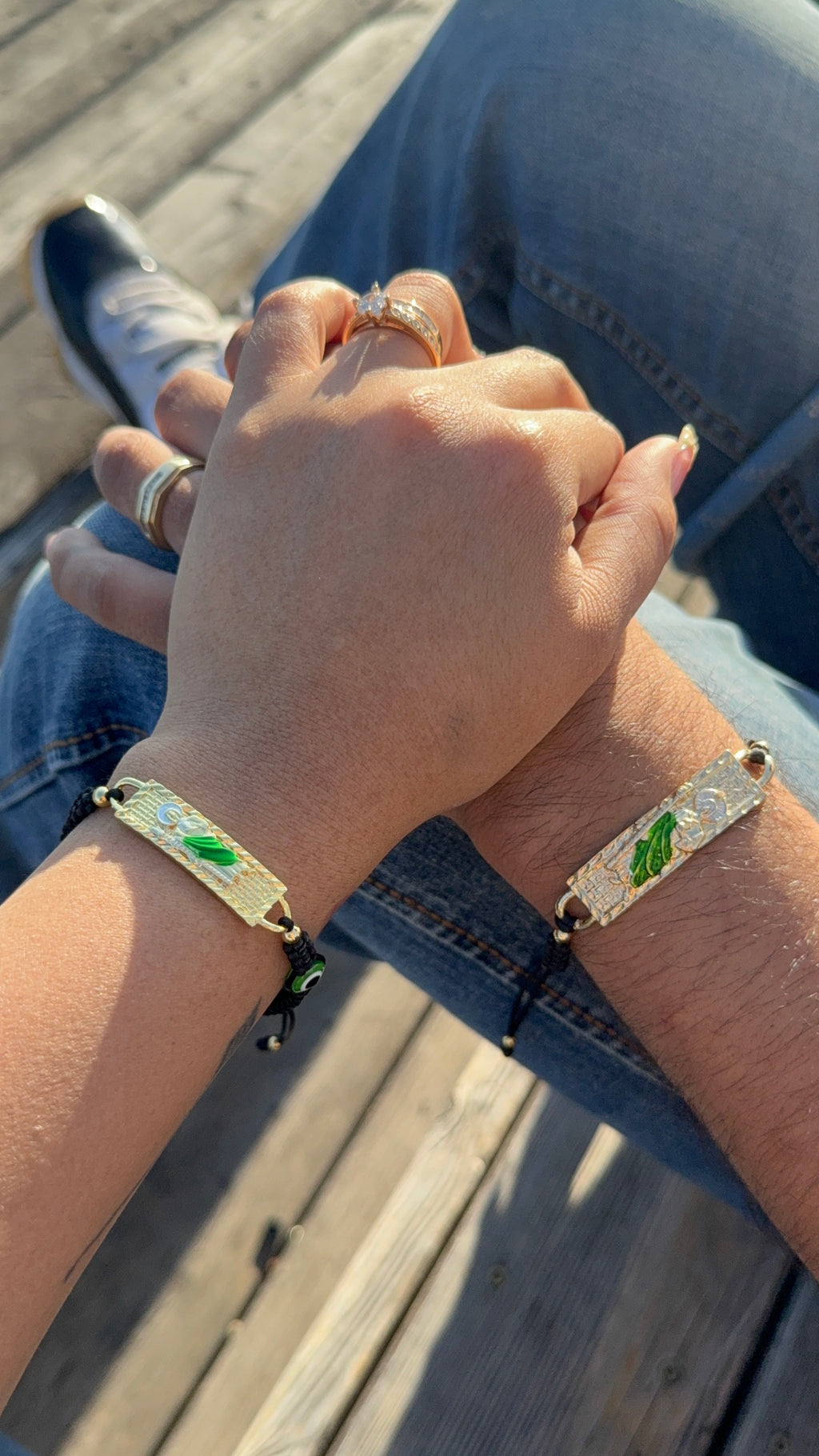 These Black San Judas Tadeo bracelets are perfect for sharing with someone special. Plated in 14k gold, they add a touch of shine to your faith. Adjustable to fit just right, they blend meaningful style with everyday comfort—one for you, one for that lucky person by your side!