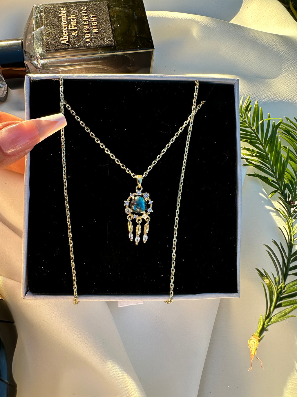 An 18-inch necklace featuring a dreamcatcher pendant with a sparkling paved frame and a mesmerizing galaxy image at its center. A talisman of dreams, protection, and cosmic energy, perfect for carrying a touch of the universe wherever you go.