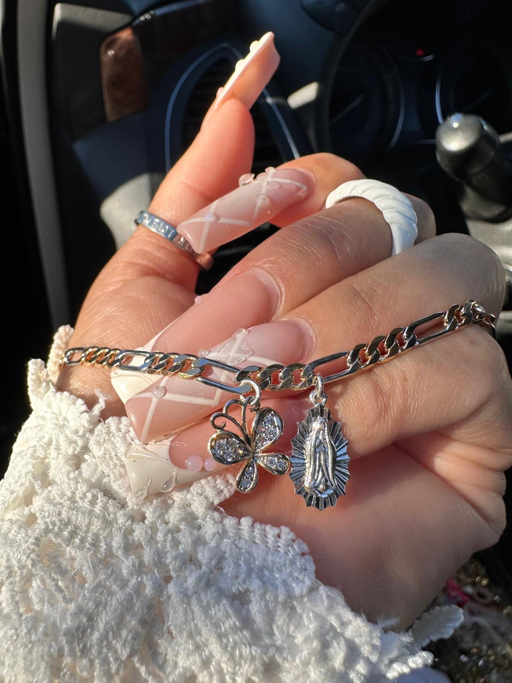 Adorn your wrist with our playful Lady of Guadalupe Figaro Bracelet! This charming piece features a stylish figaro chain design with a sacred Guadalupe charm that adds a touch of faith to your everyday look. The 6.5" length plus handy 1" extender ensures a perfect fit for any wrist size. Wear it solo or stack with other bracelets for extra flair!