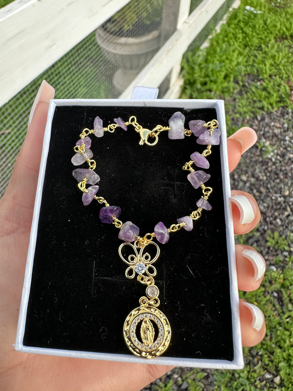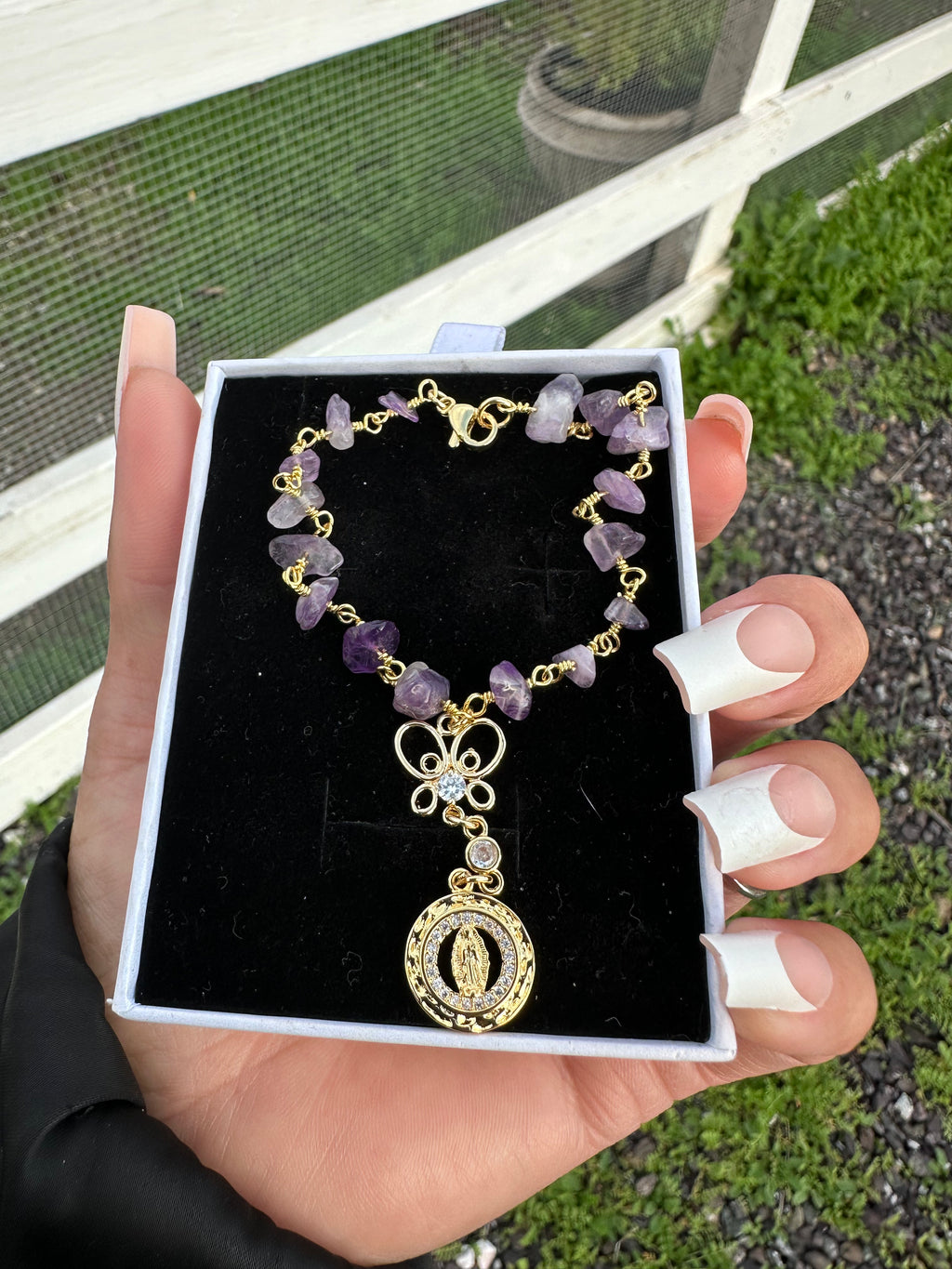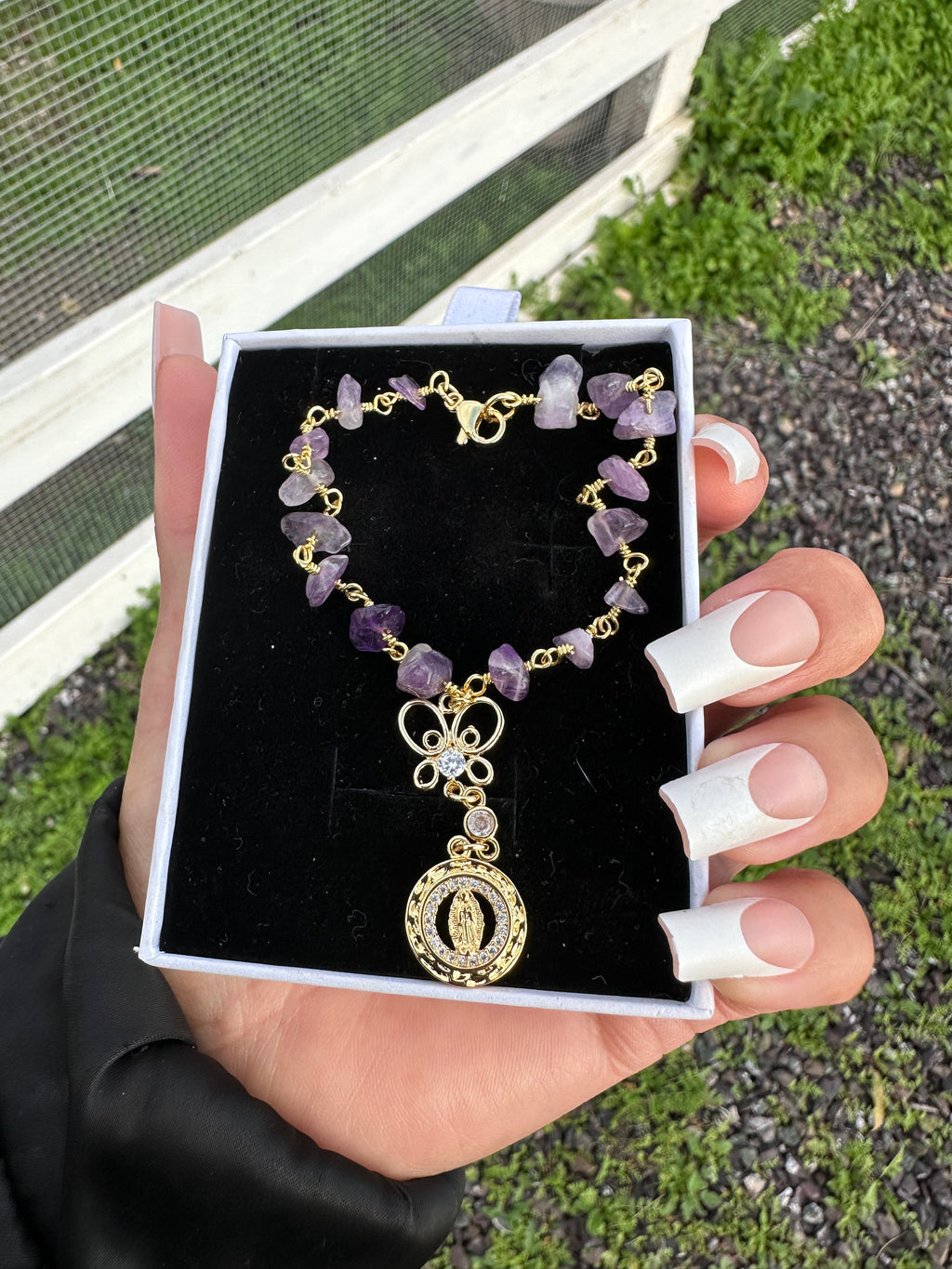 Bring a sense of peace and protection to every drive with this beautifully crafted Mini Virgin Mary Car Rosario, designed to fit perfectly around your steering wheel column.