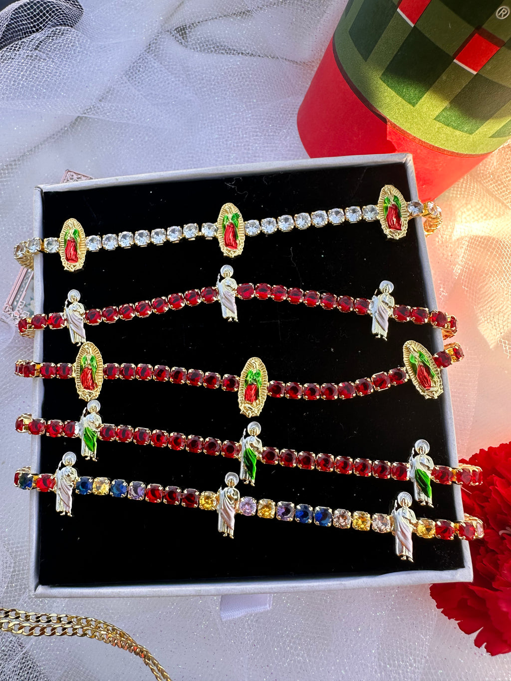 Shine with hope, protection, and positive energy with this multi-color tennis bracelet featuring a delicate Rosie Saint Jude centerpiece. Each vibrant stone adds a touch of elegance while symbolizing blessings, guidance, and abundance. Adjustable and versatile, this bracelet is perfect for layering or wearing alone as a meaningful talisman to attract luck, love, and light.