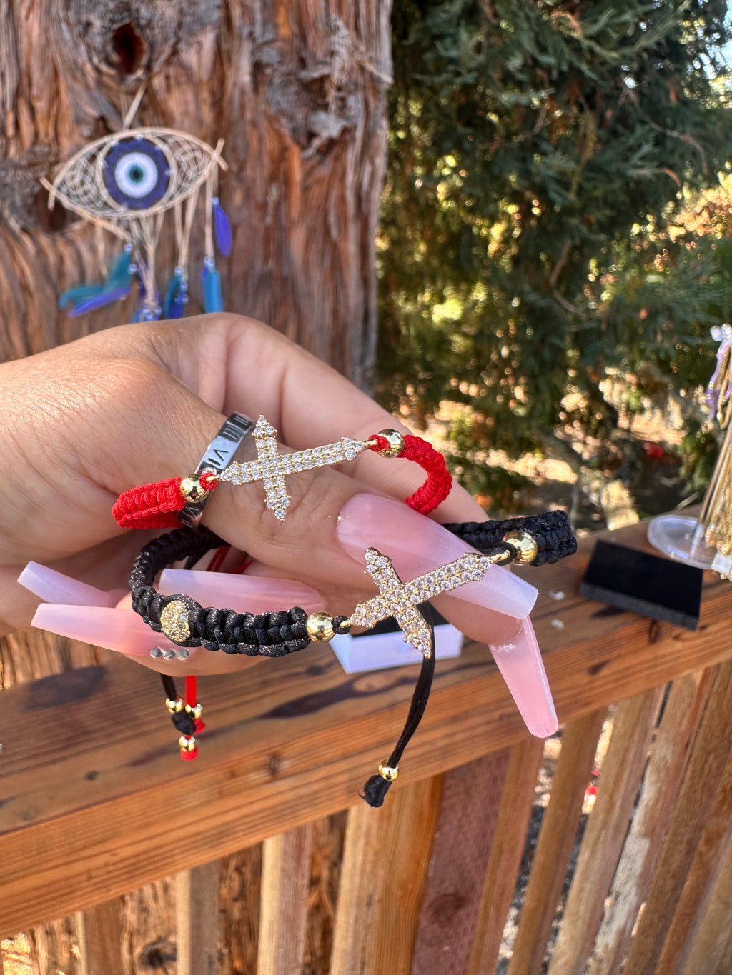 Elige entre rojo o negro: tú decides el color que mejor los represente. Cada pulsera lleva una delicada cruz, símbolo de fe y unión, perfecta para compartir con tu persona especial. Un detalle significativo para recordarse el uno al otro en todo momento.