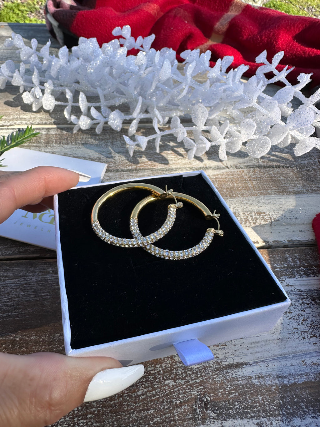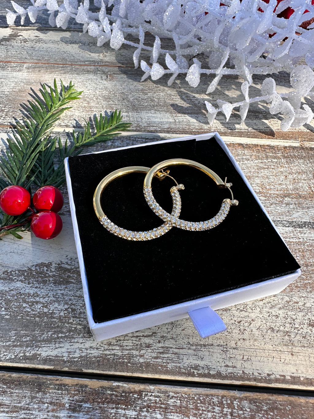 Elevate your everyday look with these gold half-pavé hoop earrings—the perfect blend of shine and sparkle. One half features a sleek polished gold finish, while the other is lined with delicate pavé crystals, giving you just the right amount of glam without being overpowering.
