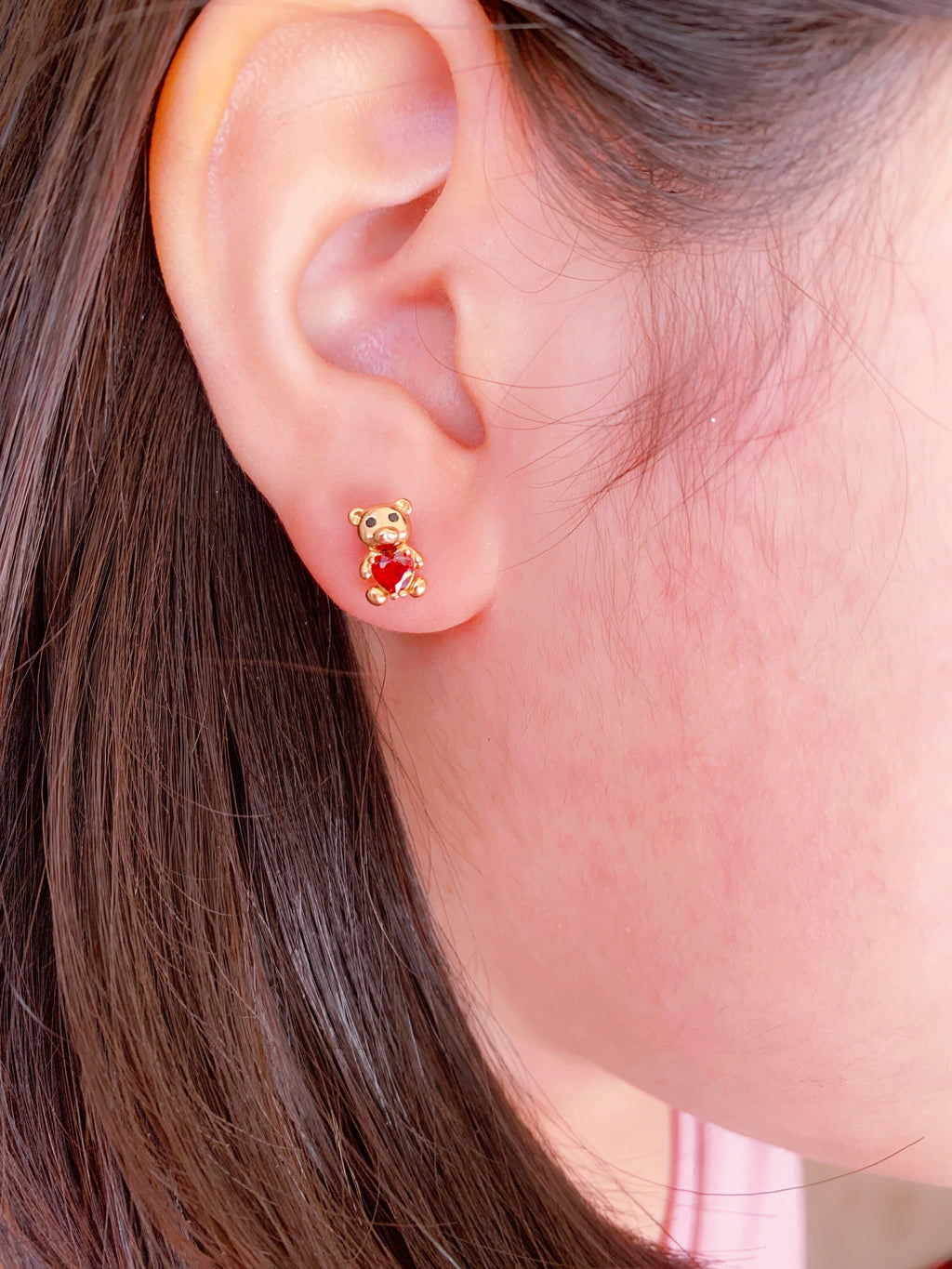 - Stud earrings – tiny teddy bears with sparkling red crystal hearts.