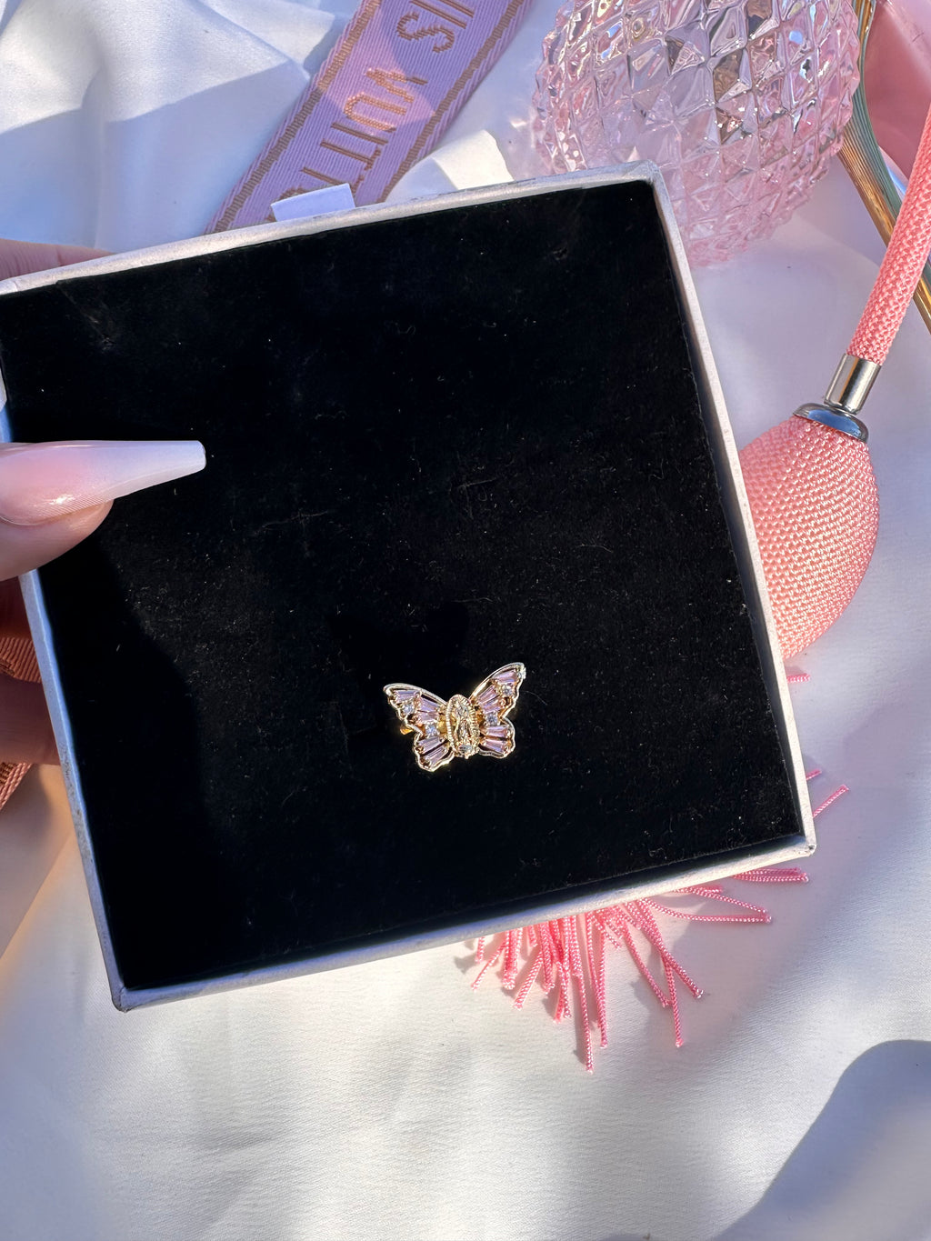 Embrace your spiritual side with a touch of whimsy in this stunning 14k gold-plated ring. Featuring a delicate Virgin Mary centerpiece surrounded by shimmering pink cubic zirconia pavé, this piece blends devotion with playful elegance. A charming butterfly accent adds movement and grace to the design. The adjustable band fits sizes 7, 8, and 9, making it the perfect gift for yourself or someone special. Whether you're layering it with other rings or wearing it solo, this versatile beauty celebrates faith with a fun, feminine flair.