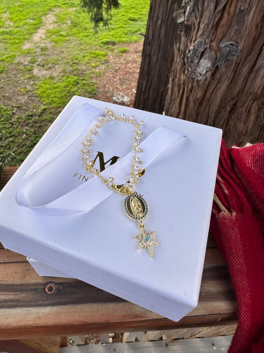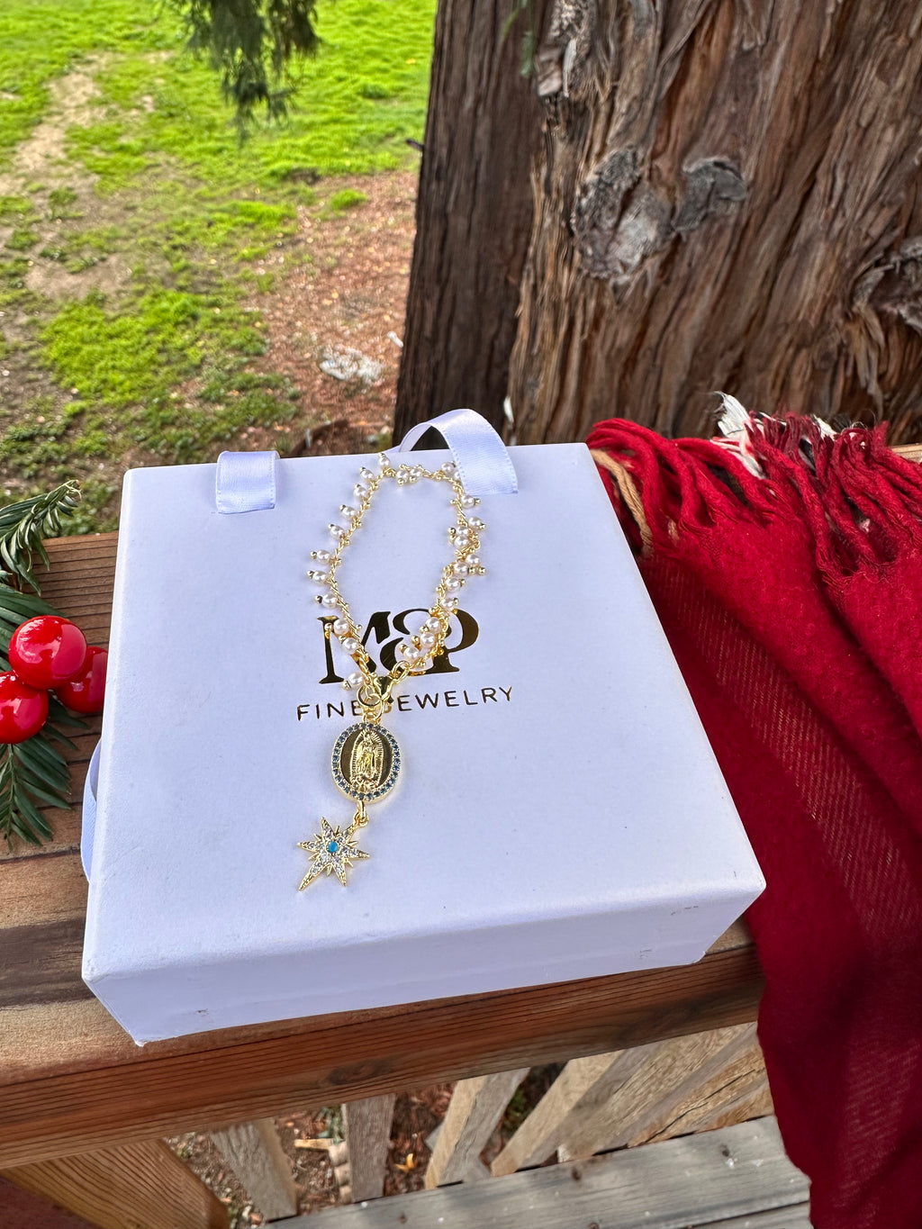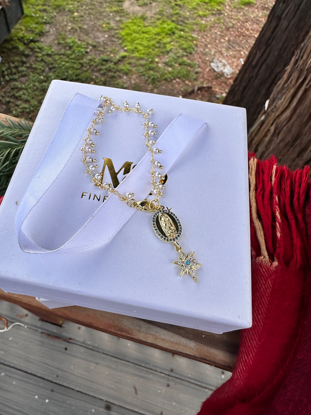 Bring a sense of peace and protection to every drive with this beautifully crafted Mini Virgin Mary Car Rosario, designed to fit perfectly around your steering wheel column.
