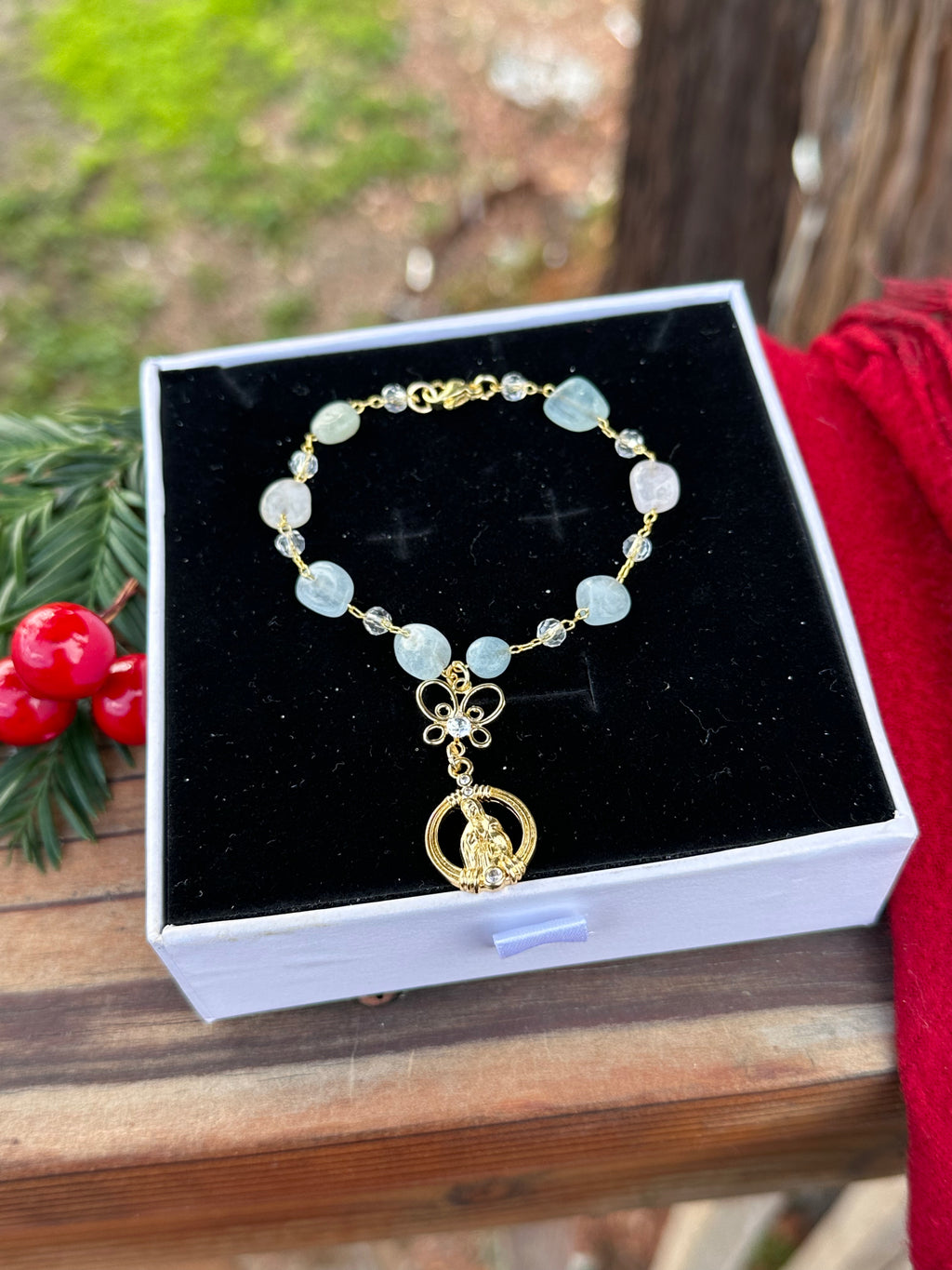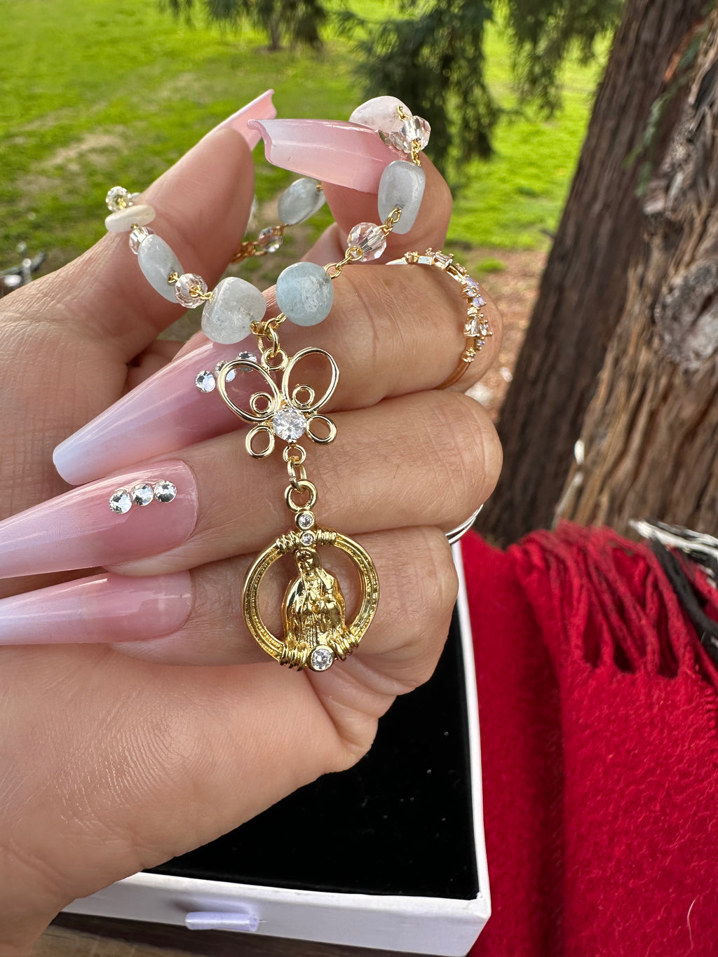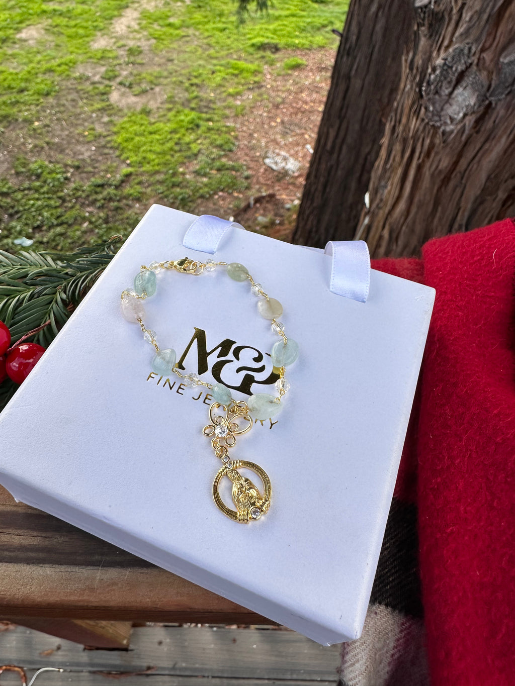 Bring a sense of peace and protection to every drive with this beautifully crafted Mini Virgin Mary Car Rosario, designed to fit perfectly around your steering wheel column.